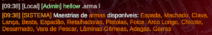 .armas est [nome_da_arma] [número_do_atributo]→ Escolhe o atributo desejado para a arma.